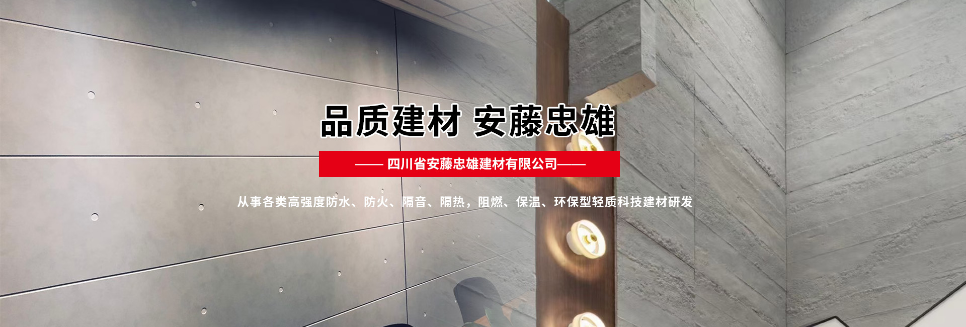 四川省安藤忠雄建材有限公司是一家經(jīng)營各種進口裝飾材料的公司,主營產(chǎn)品有:維水泥壓力板、硅酸鈣板、天花板、防爆板、泄壓板、穿孔吸音板、木紋板、棧道板、外墻木紋掛板、LOFT鋼結(jié)構(gòu)樓板、隔熱板凳、清水裝飾板、輕質(zhì)墻板等諸多產(chǎn)品。產(chǎn)品主要應(yīng)用于適用于家裝、辦公樓、展館、酒店、會所、體育館、服裝、餐飲、學(xué)校等場所。